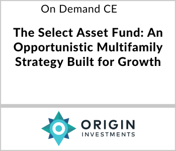 Join Origin Investments Head of Private Wealth Michael O’Shea, CFA and Managing Director of Acquisitions David Welk as they introduce the Select Asset Fund–a new multifamily development strategy designed for growth-oriented investors.